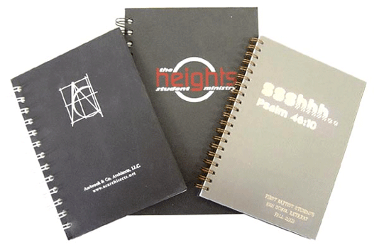 Bind on the 8 1/2" Side. Ruled or Blank Sheets. #60 White, 50 Point Cover, 1-Color Foil-Stamped Imprint |