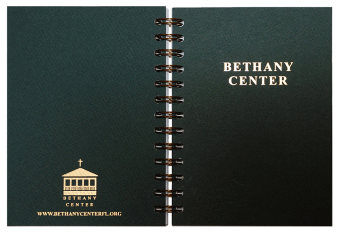 Bind on the 7" Side. Ruled or Blank Sheets. #60 White, 50 Point Cover, 1-Color Foil-Stamped Imprint |